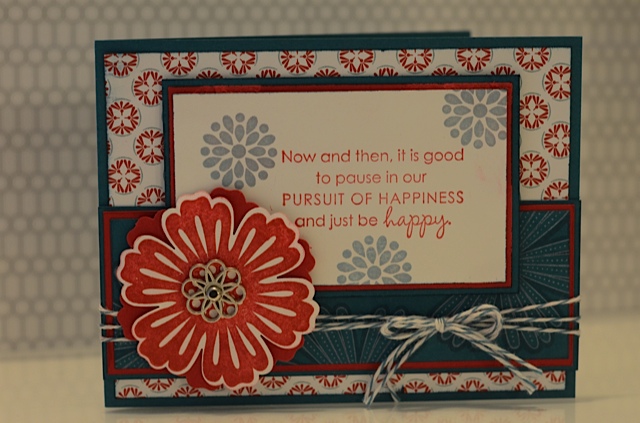 I have also recently discovered a technique that I have featured on this card, Versa Shadow.  I believe that Erin Gonzales,  a US demonstrator came up with it and I just love it's impact! …and there is no surprise that I found her idea via Erica! You can just see a hint of the technique on the Island Indigo Cardstock.  I will be using this technique at my clubs this month and shared it with my Technique Club last night…it was a hit! Thanks Erin!