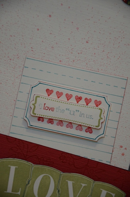 Here is the second page we created. It was definitely the much simpler of the two. I cased a layout on the cover of a magazine as inspiration and used the Twitterpated line of products by Stampin' Up! as well as Letter It alphabet set and P.S. I Love You to come up with this page. Enjoy!